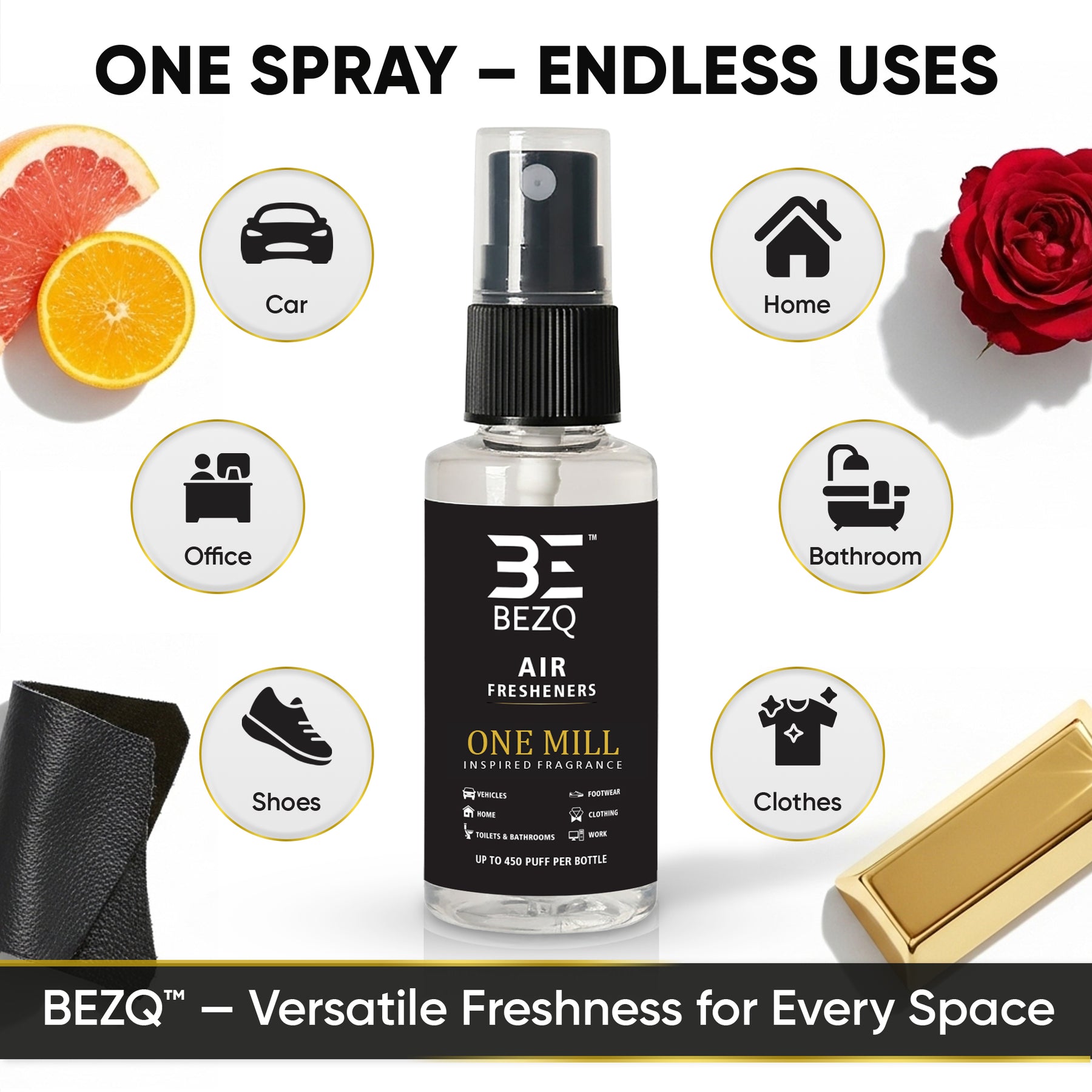 VERSATILE APPLICATION: Effective air freshener spray suitable for multiple environments including cars, homes, offices, bathrooms, and footwear